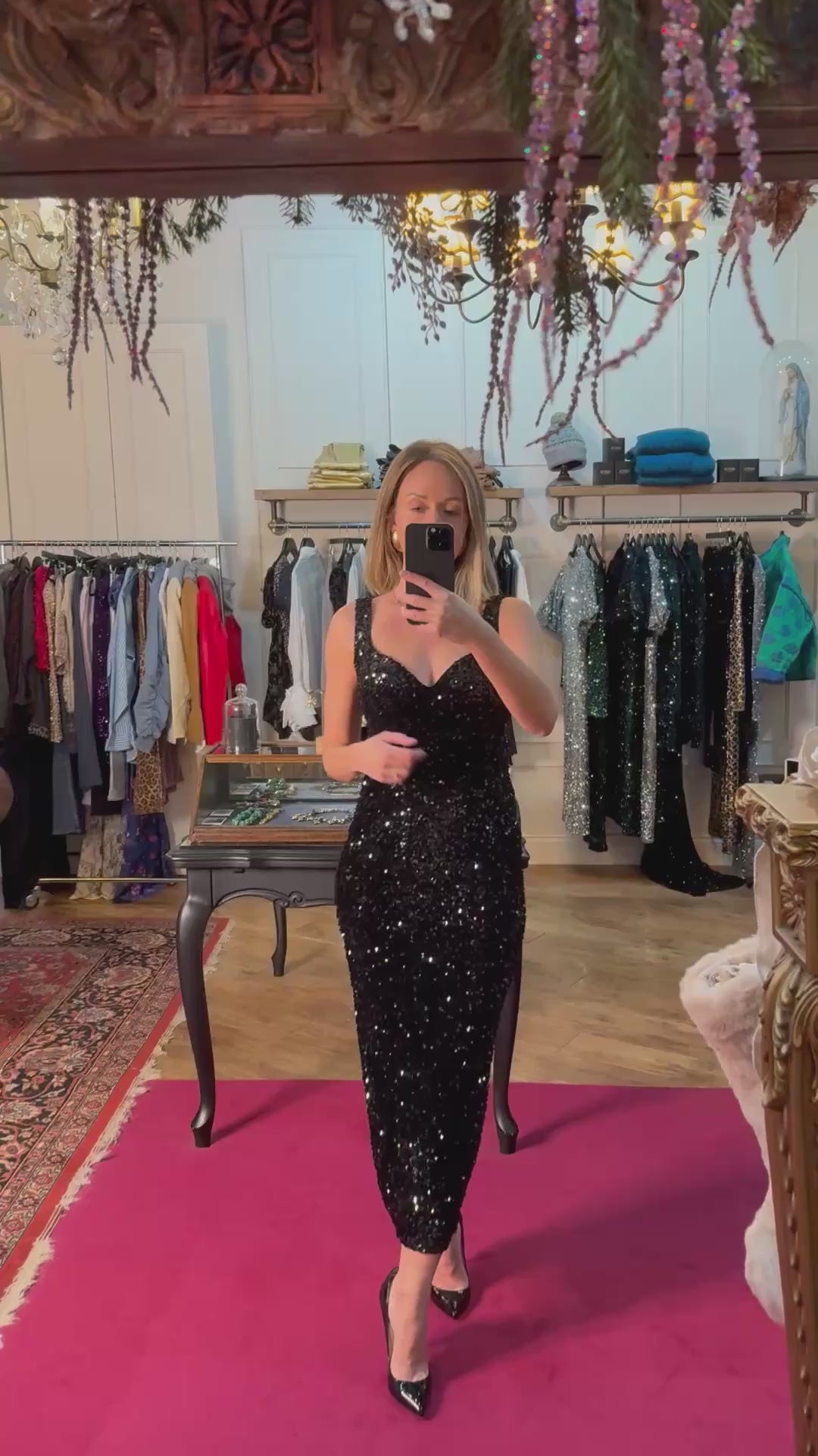 This limited edition black sequin dress is the perfect choice for your upcoming holiday events, such as Christmas day or New Year's Eve. Its stunning sparkles will guarantee that you shine in any room you enter. Don't hesitate, add a touch of glamour to your wardrobe with our luxurious bodycon dress.